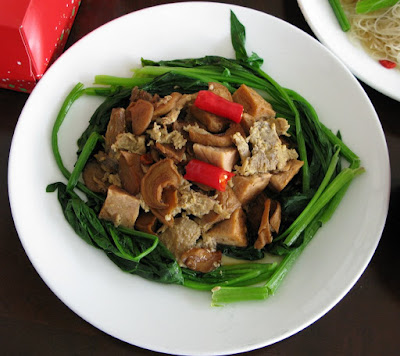 在這裡要重點報告一下, 阿三媽煮的素食在這個地區是有名的好吃! 除了當地人來買便當之外, 更有北部的人特地電話叫餐讓阿三媽宅配到北部去咧.